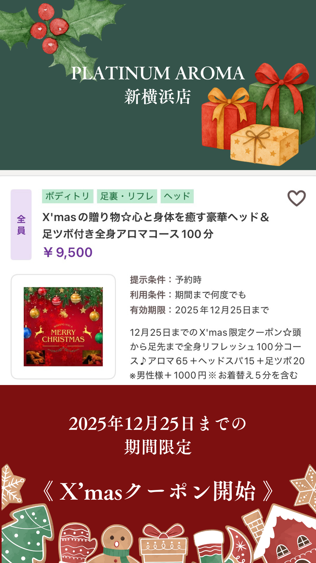 本日よりクリスマスクーポンの掲載を開始しました🎄