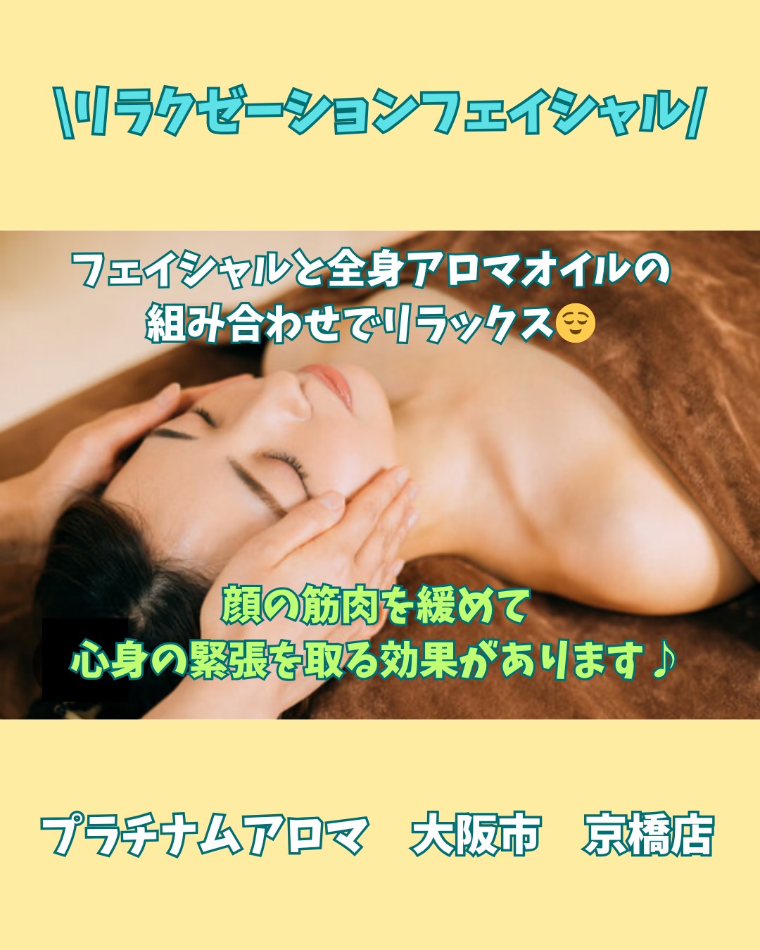 プラチナムアロマ京橋店です フェイシャルと全身アロマの組み合わせで “とろけるようなリラックス時間”を お顔の筋肉をゆるめると 心までふっと軽くなって、深い休息に入れます 「最近なんとなく疲れてる…」 そんな時にぴったりのメニューです ご予約 ホットペッパービュー……
