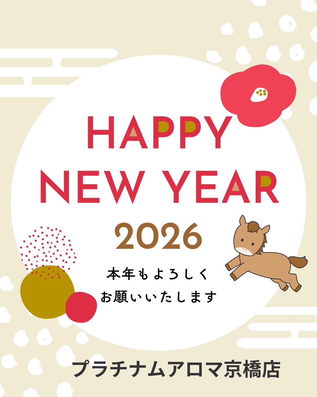 新年あけましておめでとうございます 旧年中は数あるサロンの中から当店をお選びいただき、誠にありがとうございました 2026年も、皆さまの毎日が笑顔と健康に満ちた一年となりますよう、心よりお祈り申し上げます お身体や心の疲れを少しでも癒せる場所であり続けられるよう、セラピスト一同、技……