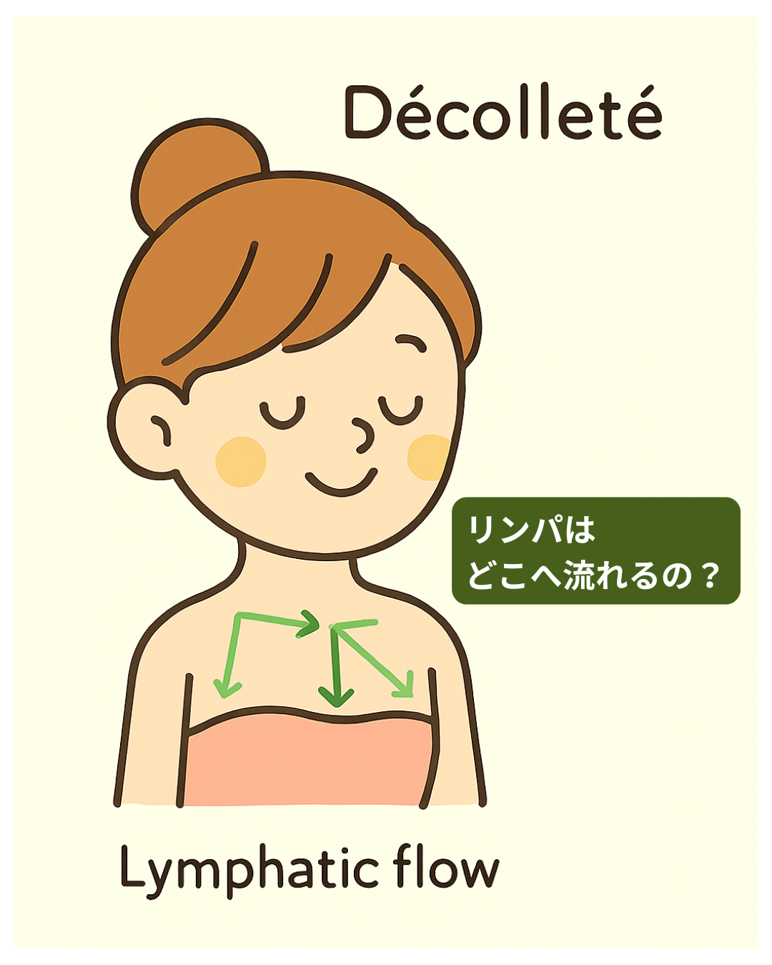 絵がほとんど答えなのですが、心臓近くの静脈が多く集まってるデコルテ(鎖骨)周辺がリンパのゴールなんですね。ですのでお疲れの箇所のマッサージだけでは効果は限定的でデコルテ周辺をほぐしてあげないと真のスッキリを得られないのです!