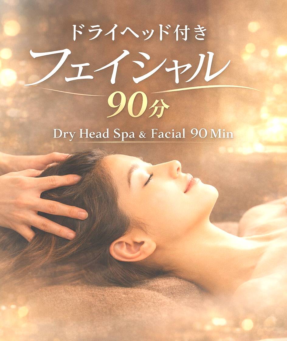 フェイシャルでお肌や筋肉にアプローチしながらドライヘッドで頭部の緊張をゆるめ、深いリラックス状態へ導いていきます。