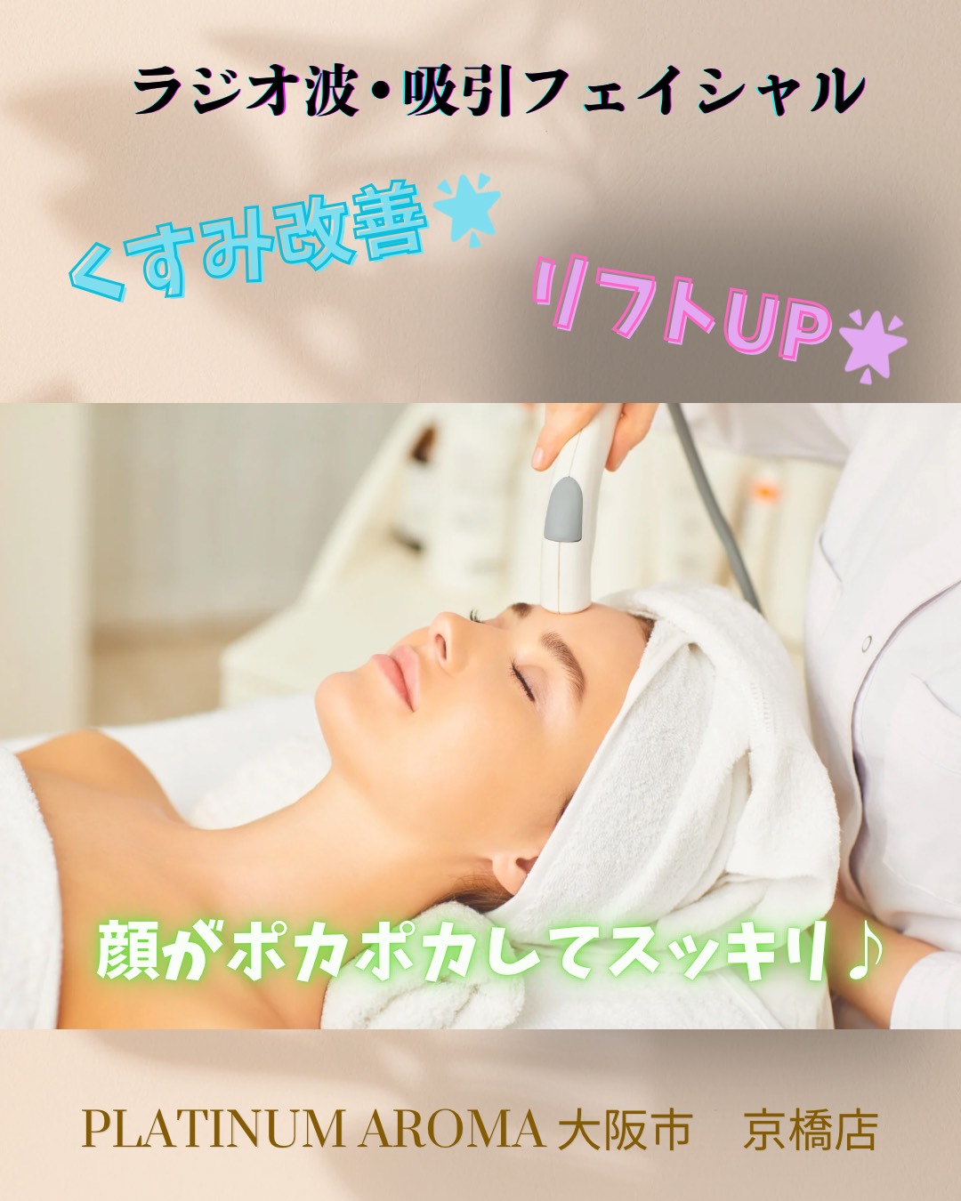 プラチナムアロマ京橋店ですラジオ波フェイシャルのメニューございますラジオ波の温熱
