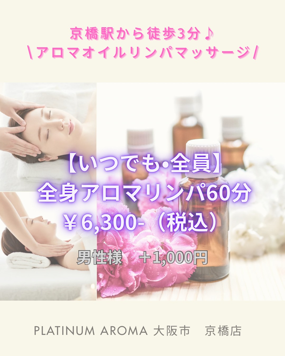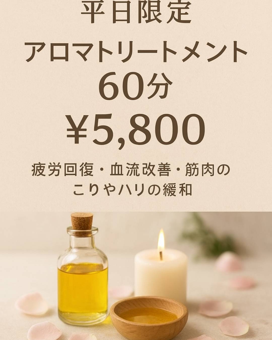 平日限定!京橋でアロマトリートメント60分¥5,800– 疲れた体と心をリフレッシュ