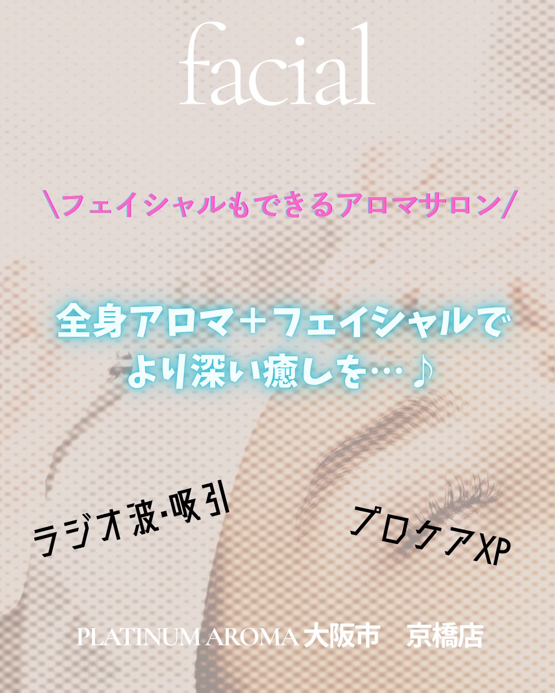 プラチナムアロマ京橋店ですお顔も身体も、どちらも大切にしたい方へアロマで心身をゆ