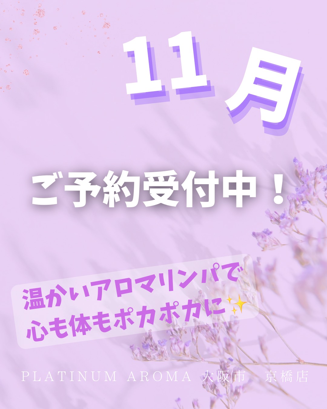 プラチナムアロマ京橋店【11月のご予約受付中】気づけばもうすぐ冬。冷えや疲れ