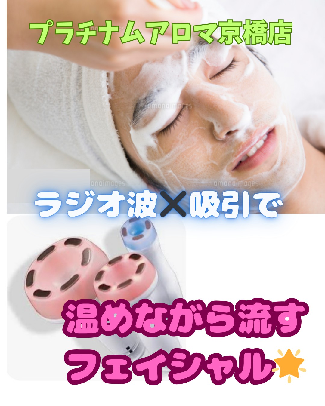 プラチナムアロマ京橋店ですフェイシャルラジオ波でお顔を内側からじんわり温めるケア