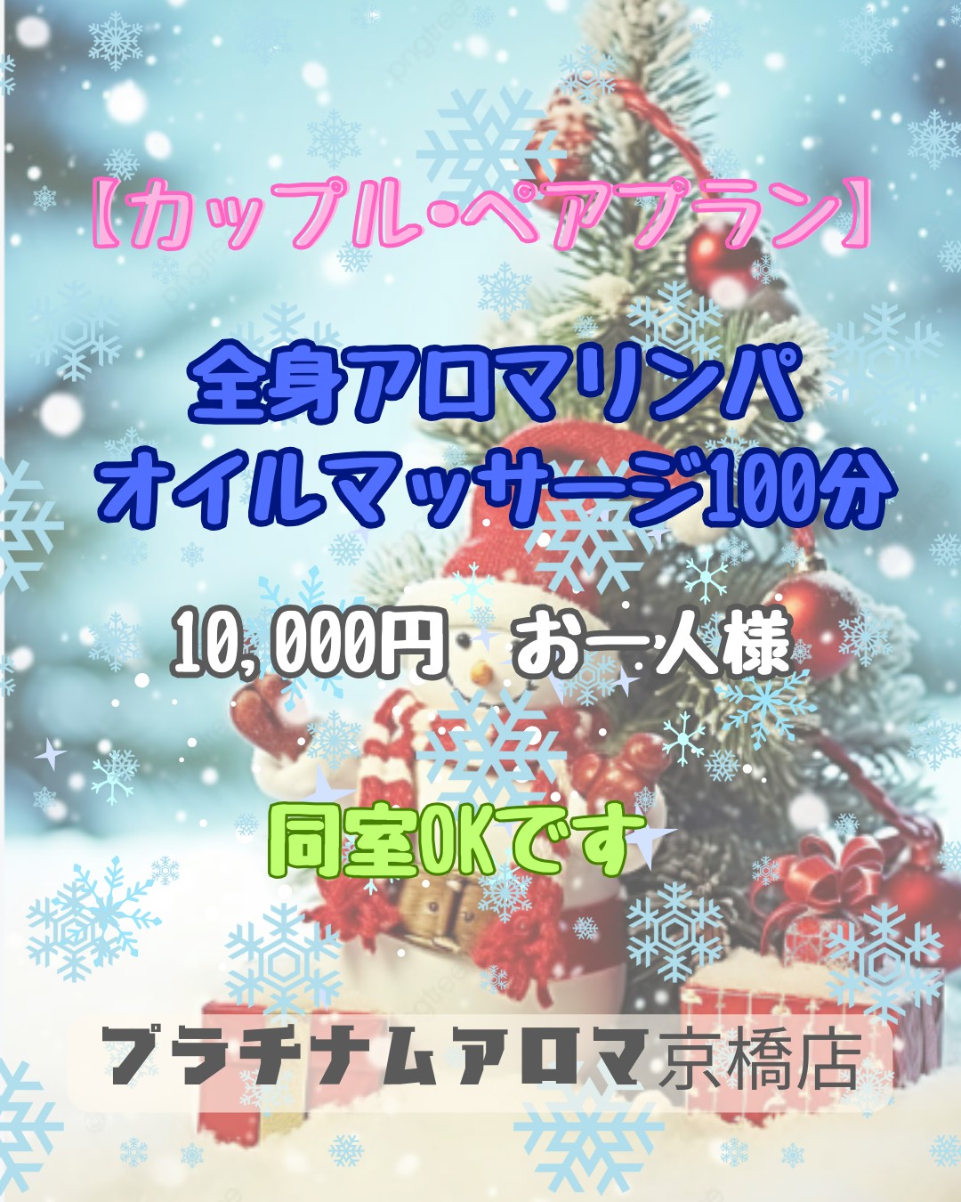 プラチナムアロマ京橋店です【Xmas限定】カップルペア特別プラン大切な人と一