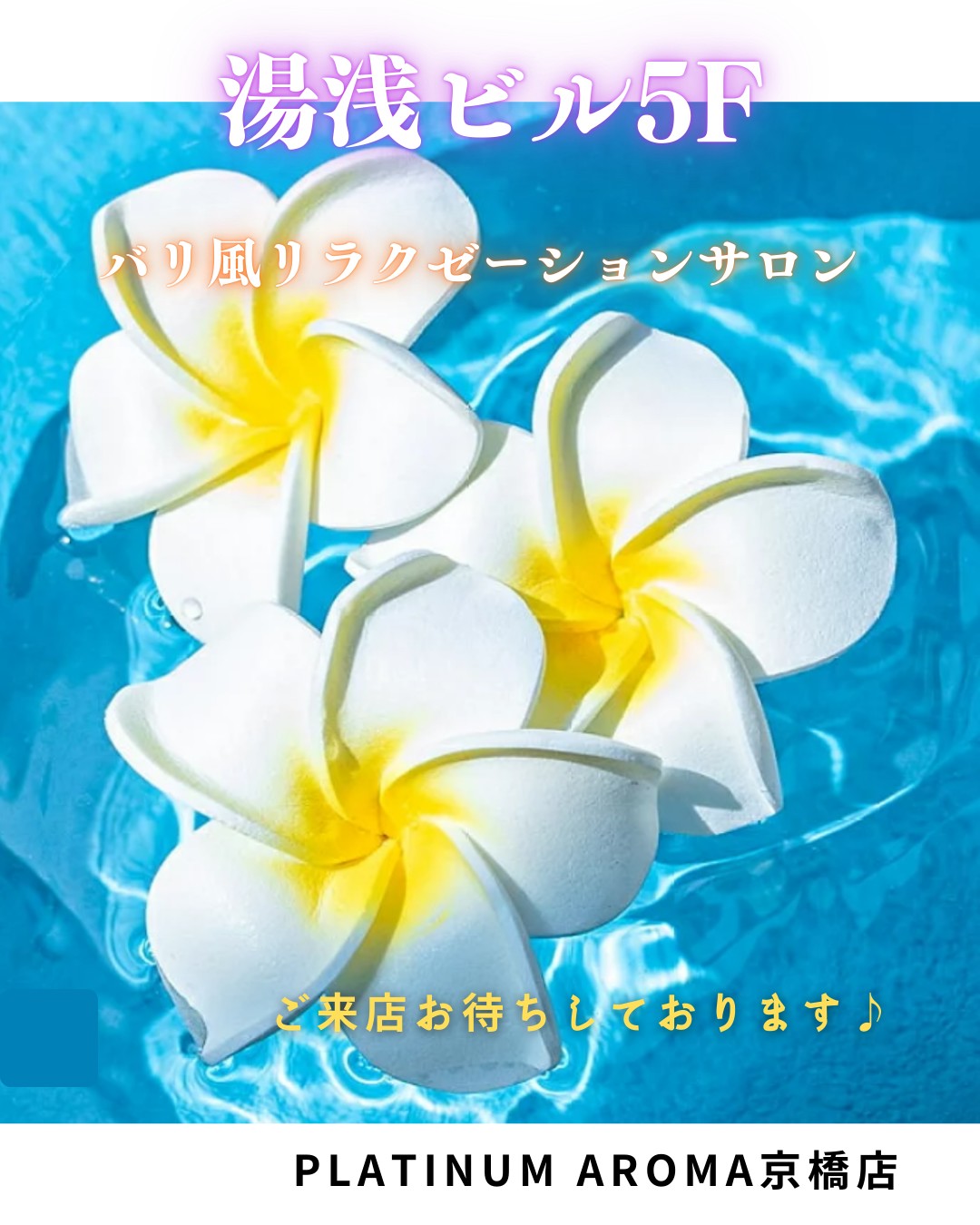 バリ風リラクゼーションサロンプラチナムアロマ京橋店です南国の花 プルメリア。バリ