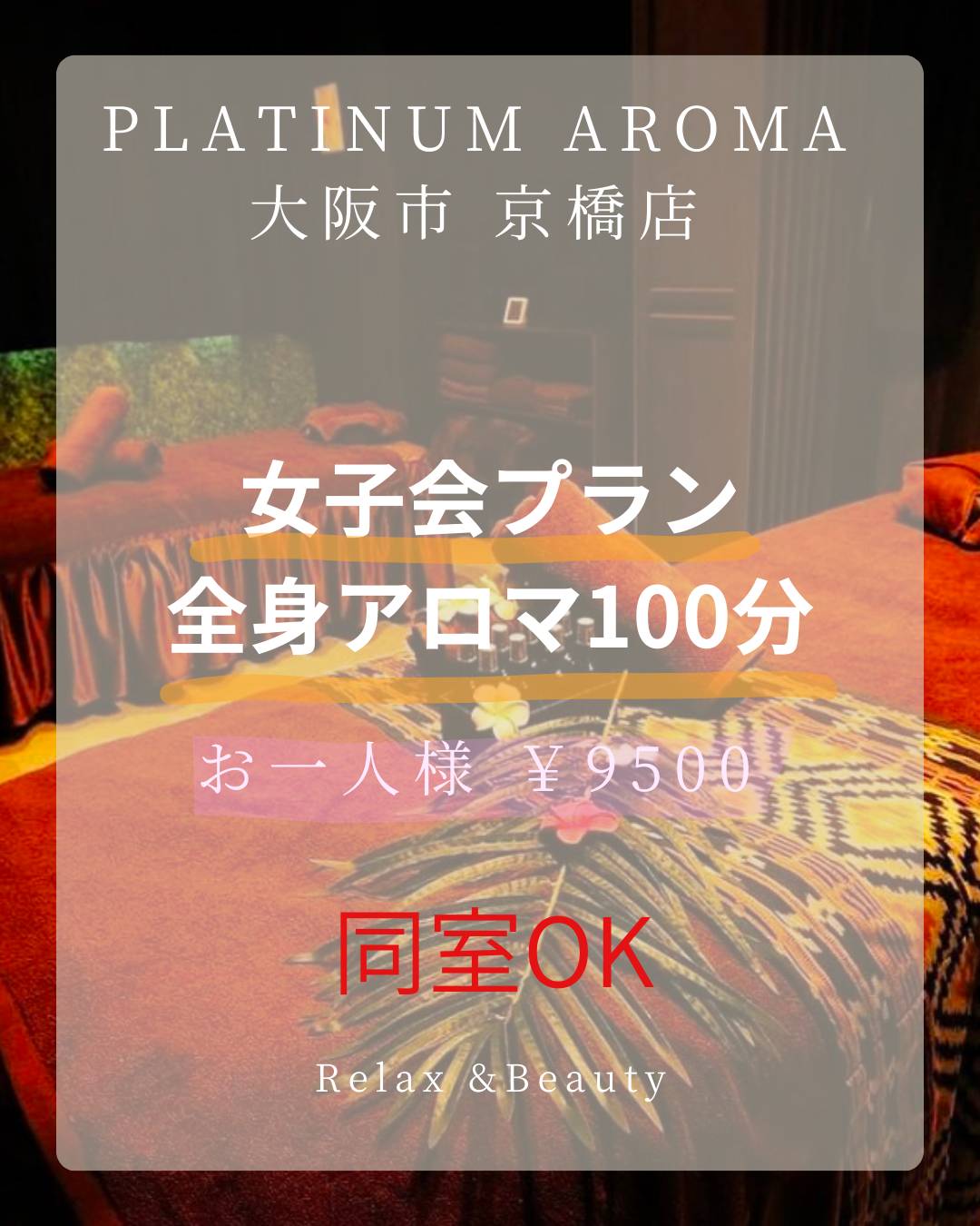 PLATINUM AROMA京橋店では、【カップル・ペアプラン100分】をご用意